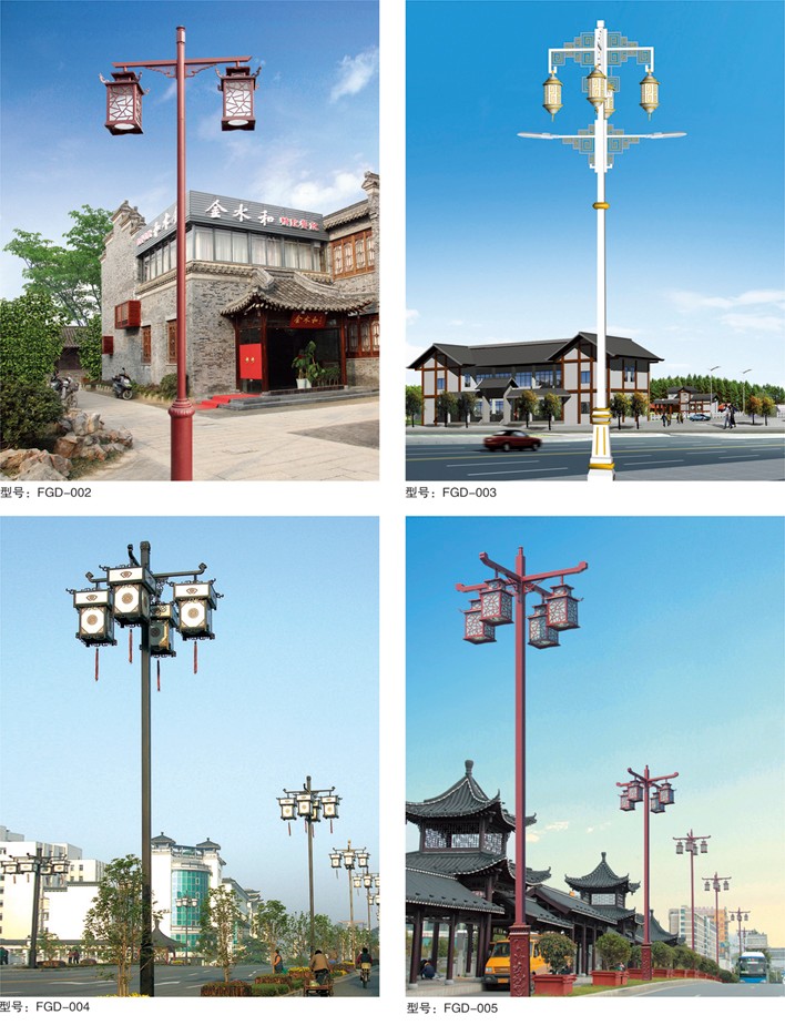 仿古燈結構簡潔,外形美觀流暢,主要應用于城市道路,古鎮,景觀亮化,旅游景區,公園庭院,廣場照明及亮化裝飾。仿古燈設計自然常態,在展示現代精美制造工藝的同時,又融入多種具有一定地方或民族文化特色的元素,即可美化亮化環境,又能成為一座城市一個地區一方民族文化的象征。無論是旅游景區還是園林古鎮都有他適合的道理極具觀賞和使用價值。