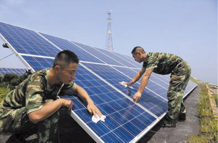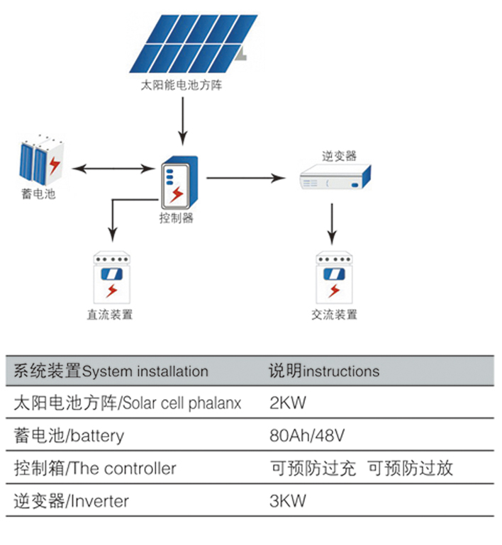 白天通過太陽電池方陣發的電儲存在蓄電池電池中,滿足軍隊營區生活照明和辦公設施使用。……